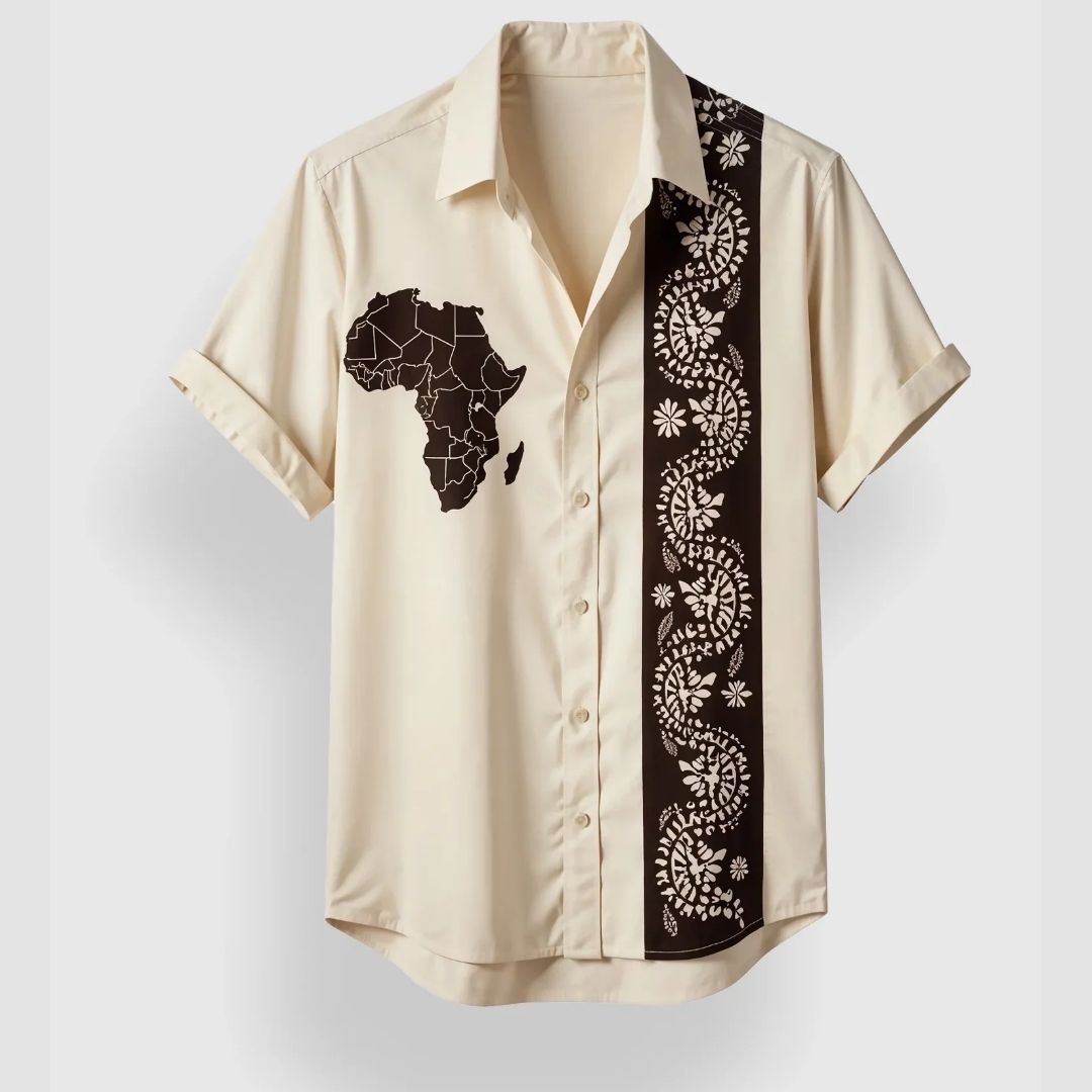 Description: Vibrant half-sleeve shirt with all-over palm leaf print. Lightweight cotton for a breezy summer look.
